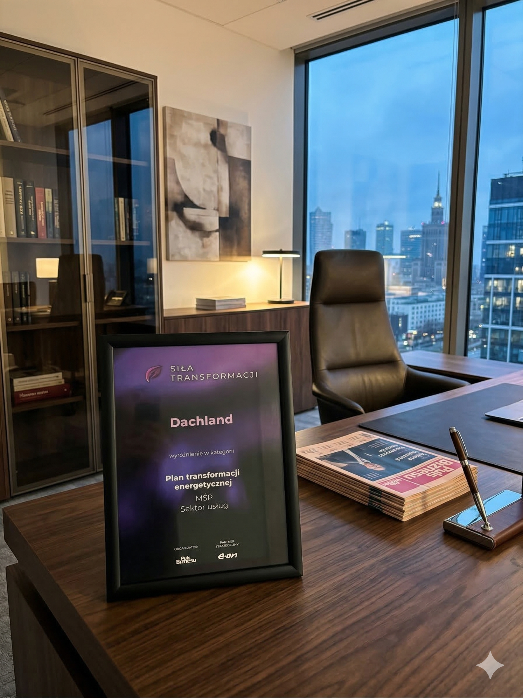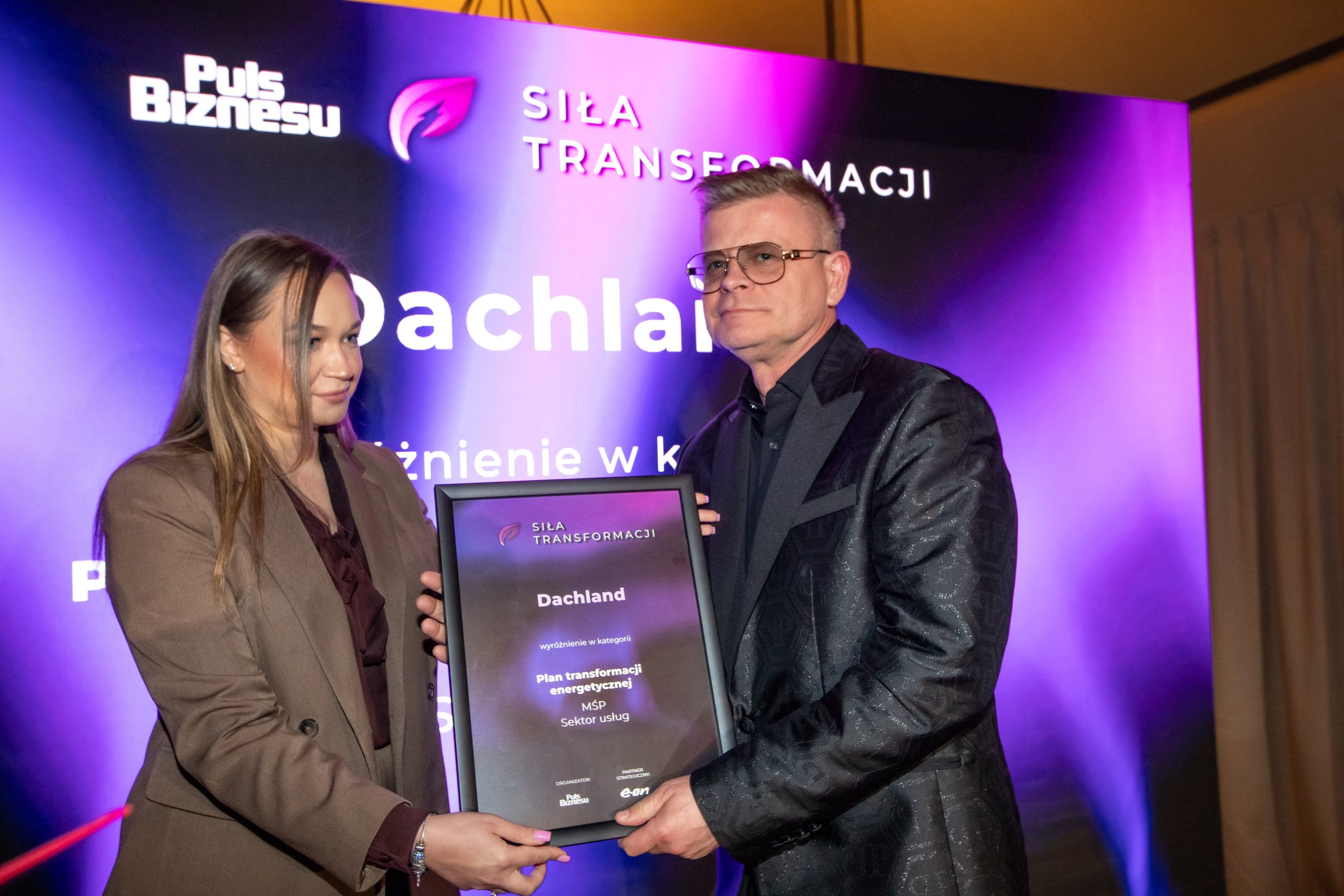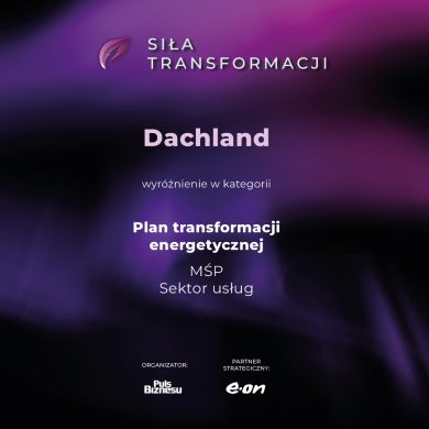 Doceniono nasz plan transformacji energetycznejZ ogromną satysfakcją informujemy, że Dachland Sp. z o.o. znalazł się w gronie firm wyróżnionych przez kapitułę konkursu „Siła Transformacji” organizowanego przez Puls Biznesu w kategorii „Plan transformacji energetycznej”.