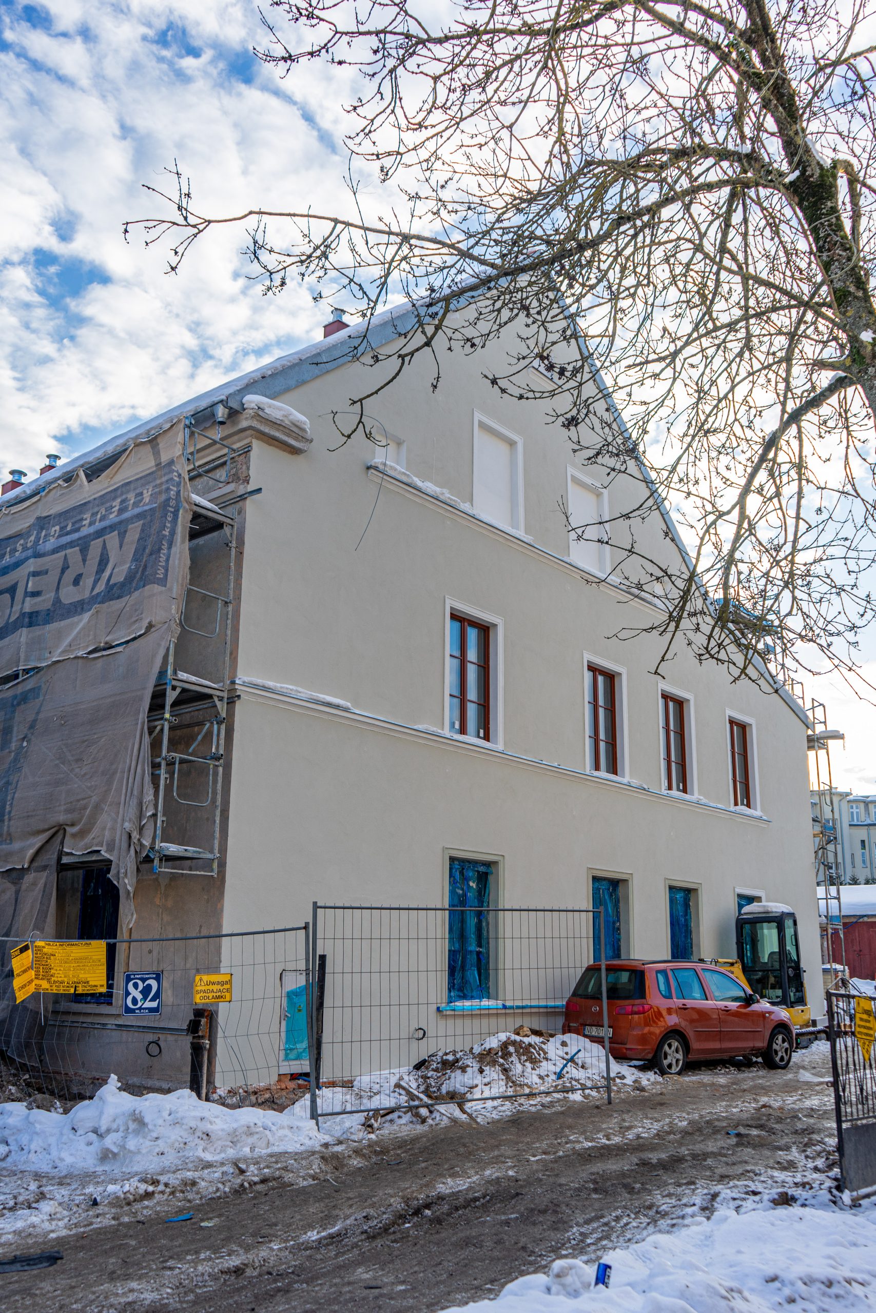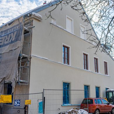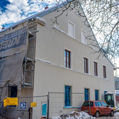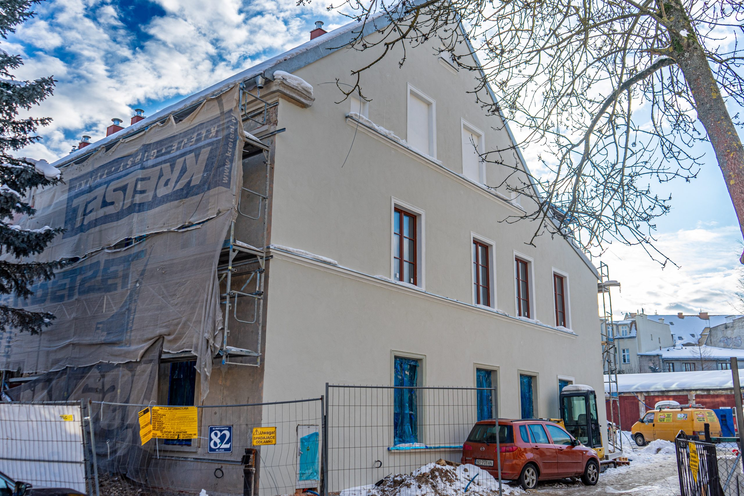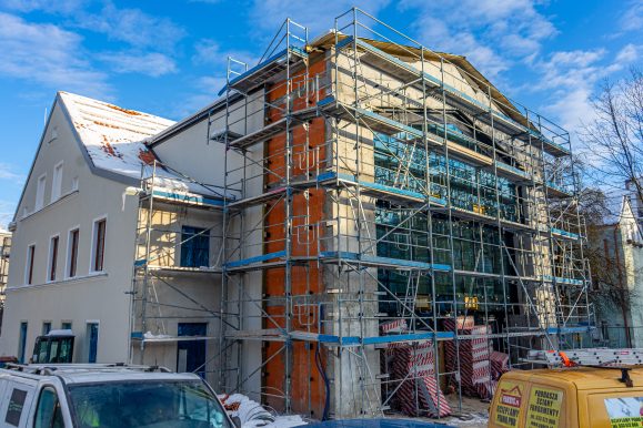 Nowy obiekt powstaje na miejscu niemal stuletniego budynku. Zachowana i odpowiednio zabezpieczona historyczna fasada frontowa stanie się symbolicznym łącznikiem między przeszłością a nową, funkcjonalną bryłą. Pozostała część obiektu wznoszona jest od podstaw, z wykorzystaniem współczesnych technologii i materiałów.